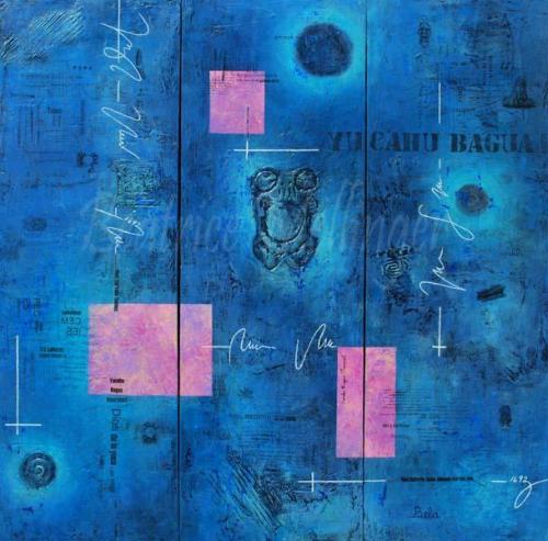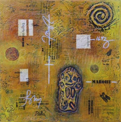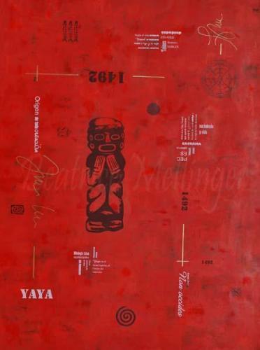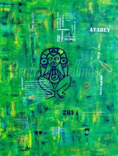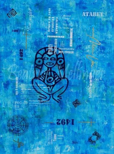 This series of paintings and prints is my response to the Caribbean Civilization which preceded by thousands of years before the arrival of the Europeans. The Conquistadors' arrival was a harsh and drastic shock and our ancestors’ society peaceful way of life was disrupted forever and their culture was controlled to the point of quasi annihilation. In spite of the almost complete disappearance of its people, The Taino culture remains an essential component of the Caribbean heritage, as the roots of its identity. It is therefore essential to recognize our Amerindian origins, and set them in sequence with the African heritage which remains a fundamental part of our culture, associated to a posterior substantial contribution from East Indians and Chinese people.